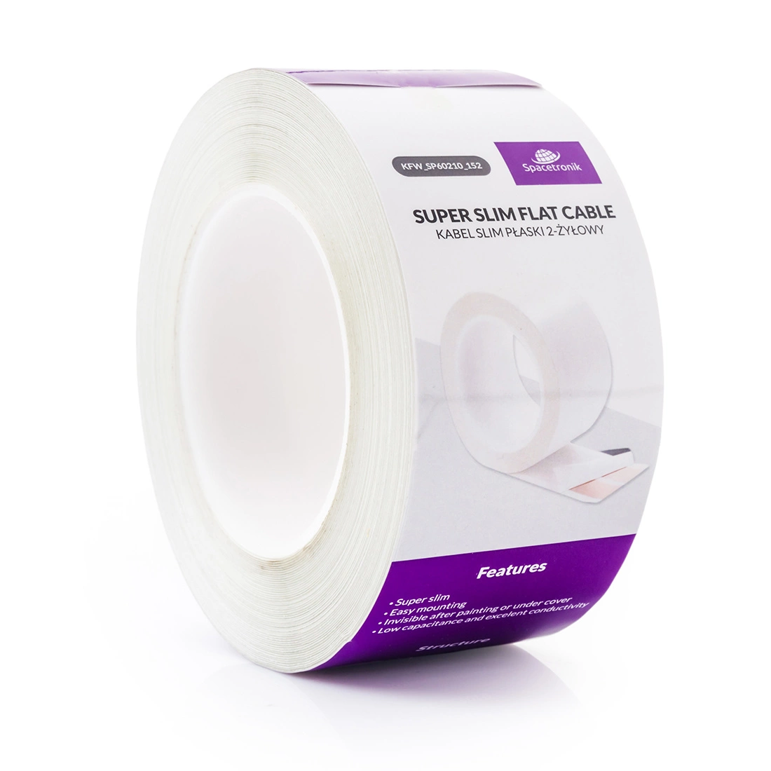 super płaski kabel zasilający, kabel Spacetronik, KFW_SP60210_152, kabel z warstwą klejącą, kabel do głośników, kabel HI-FI, kabel do oświetlenia LED, kabel zasilający AC/DC, estetyczny kabel zasilający, przewód OFC, kabel do domu, kabel do biura, kabel audio, kabel do systemów HI-FI, przewód niskiej pojemności, przewód wysokiej przewodności