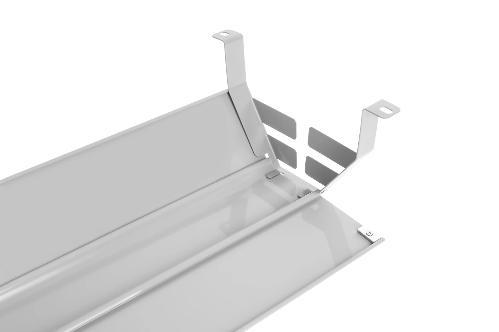 Spacetronik SPK525G to wytrzymały organizer kabli do montażu pod blatem biurka. Stalowy kosz o długości 54 cm i szerokości 19 cm umożliwia bezpieczne i estetyczne przechowywanie listwy zasilającej, zasilaczy, przedłużaczy i kabli. Montowany na śruby, pasuje do większości biurek i blatów roboczych. Oba boki posiadają magnetyczne zamknięcia, dzięki którym zyskujesz szybki dostęp do wnętrza organizera bez konieczności jego demontażu.