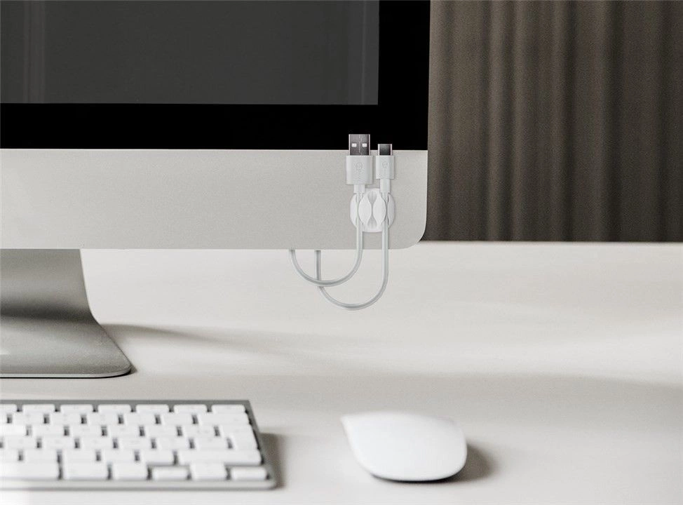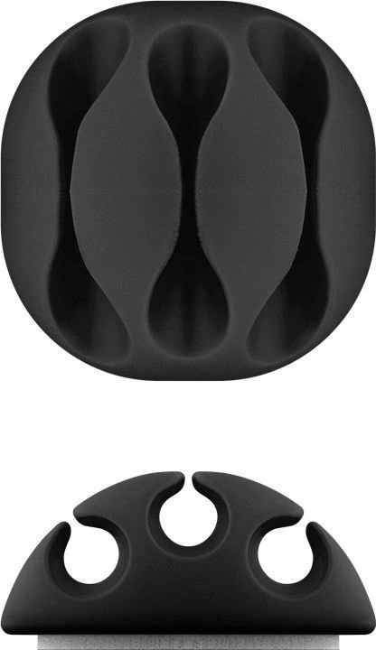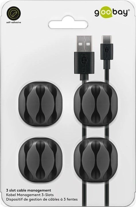 Organizer kabli w postaci samoprzylepnej prowadnicy na trzy przewody. Zestaw czterech sztuk w kolorze czarnym, klej 3M
