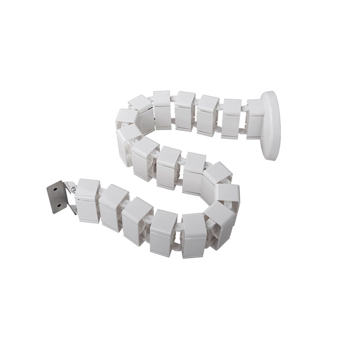 Wymienne bloki Zatrzaskowe bloki łączą się ze stalową podstawą o średnicy 5,08. Prowadnica kablowa wyposażona jest w górny element zaczepowy do przykręcania pod górną powierzchnią blatu. Mamy możliwość dostosowania długości poprzez dodawanie/usuwanie bloków.