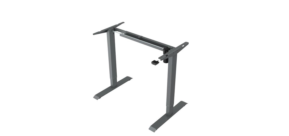 Stelaż wyposażony w pojedynczy silnik zapewniający sprawną i płynną zmianę wysokości blatu.