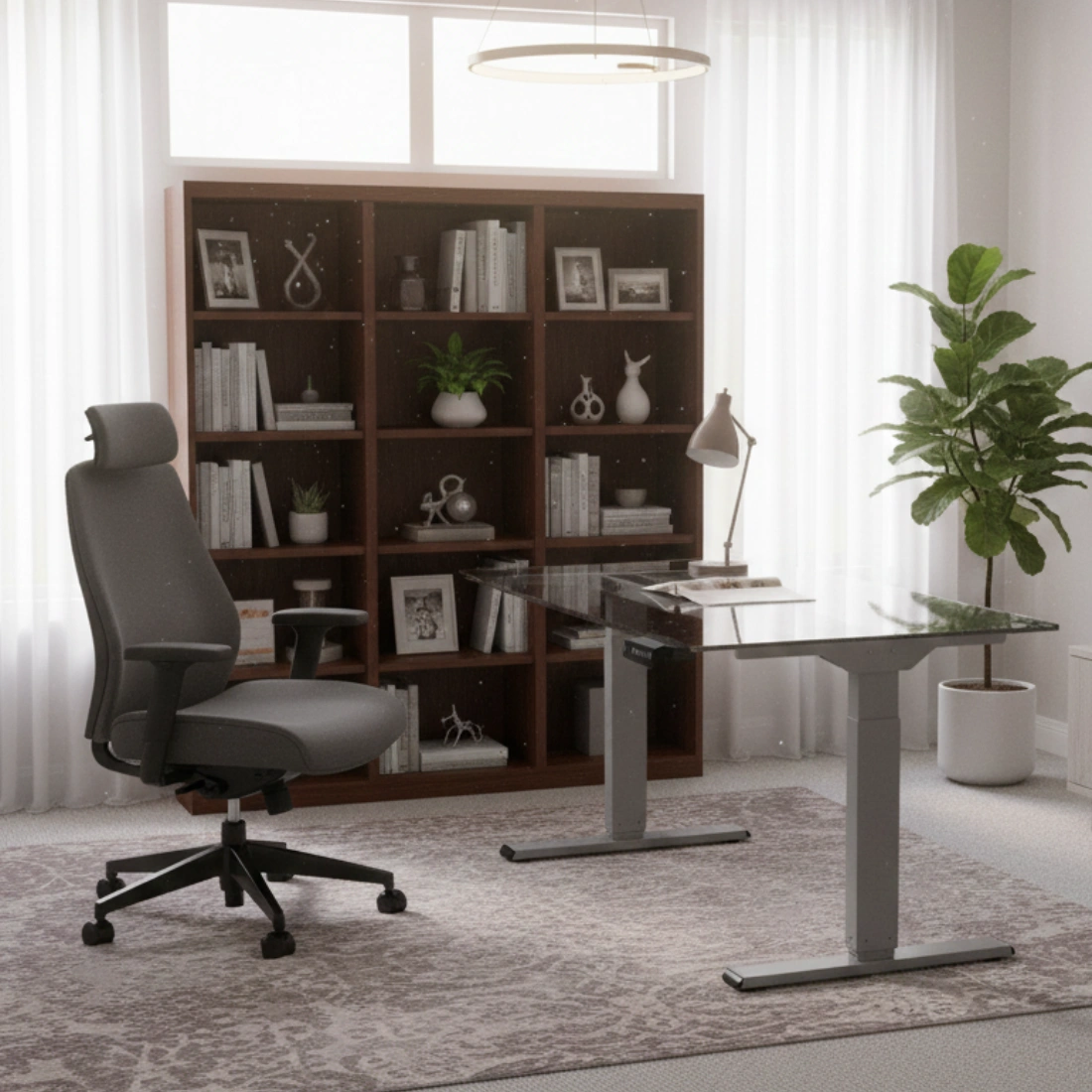 • Elektrický stolový rám, ktorý umožňuje vytvoriť ergonomický stôl a pracovať striedavo v stoji a v sede. Nastaviteľná výška od 60 cm do 125 cm. Dvojmotorový systém. Nosnosť do 100 kg. Systém proti kolízii. Ovládač s pamäťou