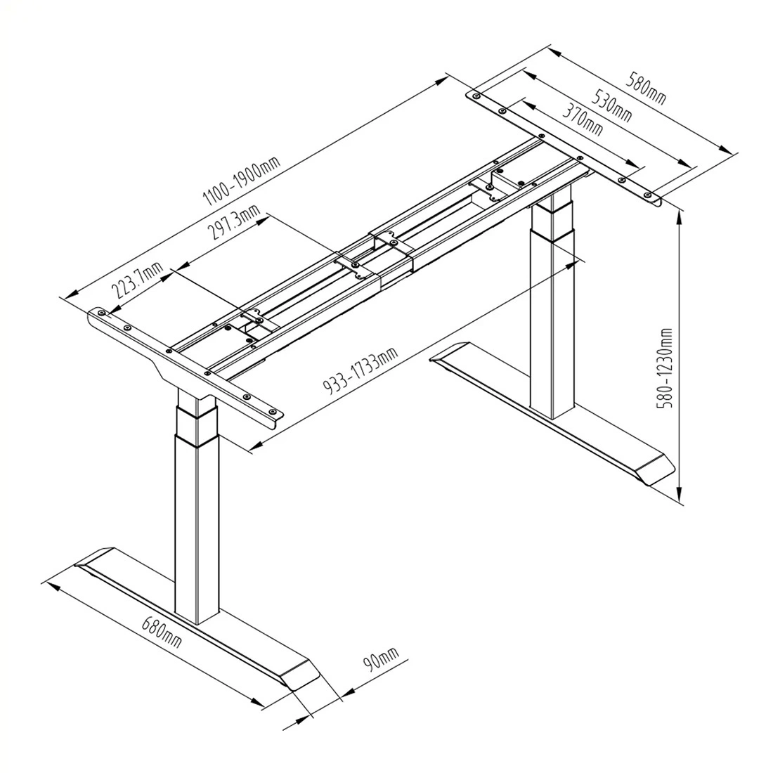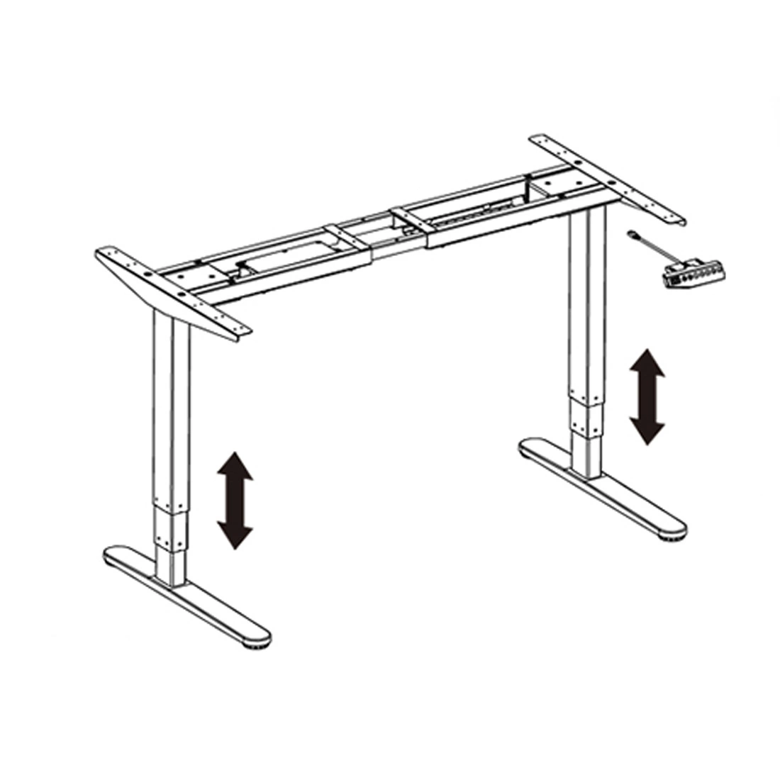 Wszechstronna rama elektrycznego stelaża oprócz regulacji góra/dół pozwala na ręczną regulację horyzontalną (w bok). W łatwy sposób rozszerzysz konstrukcję pod wymiar swojego blatu. Sugerowane wymiary blatu: 1200-2000 mm (szerokość), 600-800 mm (głębokość).