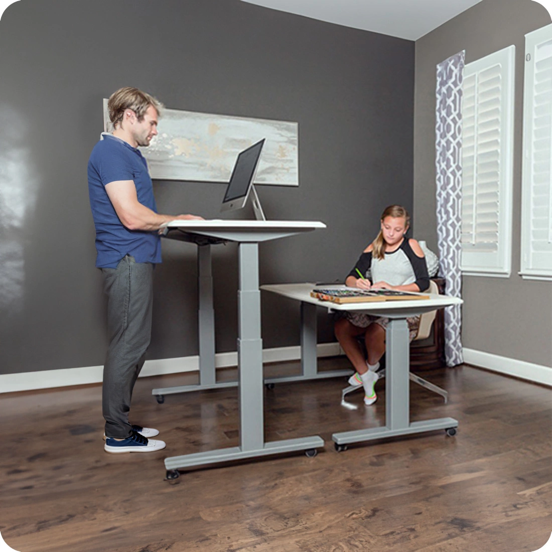 Ze stelażem elektrycznym Twoje miejsce pracy stanie się hybrydowe. W przypadku gdy stwierdzisz, że siedzenie staje się uciążliwe, zmień pozycję siedzącą na stojącą, a biurko zrobi to razem z Tobą. Reguluj wysokość w zakresie 580 - 1230 mm.