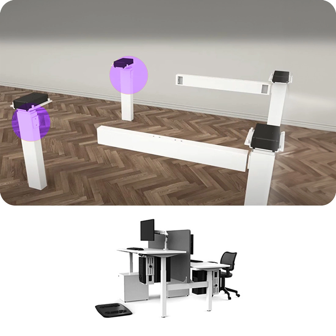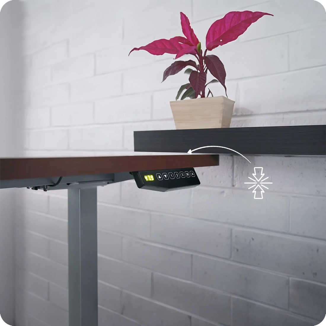 Stelaż z elektryczną regulacją wysokości został wyposażony w ulepszoną technologię antykolizyjną. Ten innowacyjny system powoduje, że biurko podczas zmiany wysokości cofnie się automatycznie, jeśli napotka przeszkodę na swojej drodze. Jest to świetna funkcja dla tych, którzy mają dzieci lub zwierzęta domowe, które przychodzą do twojego miejsca pracy.