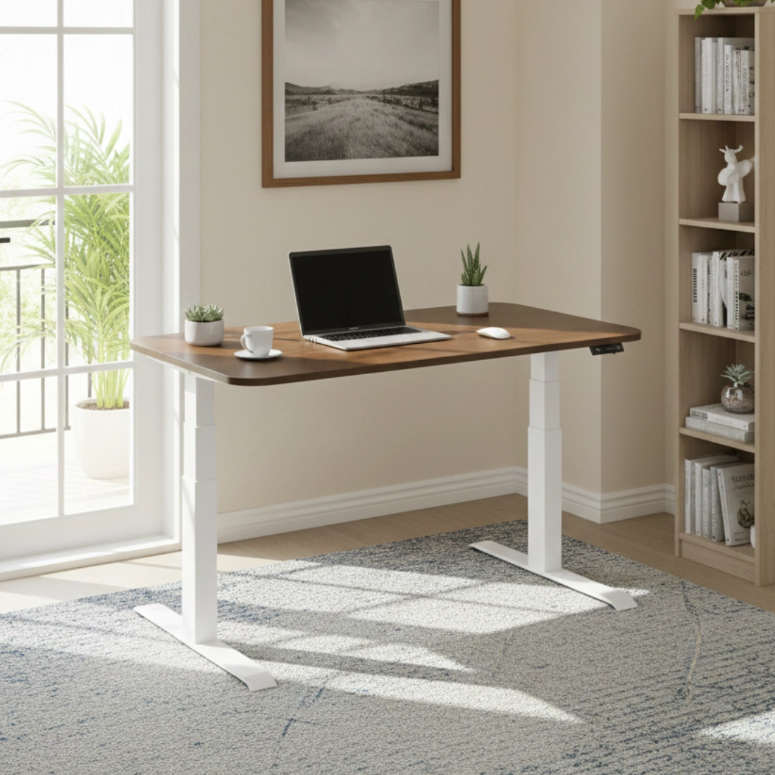 • Stelaż biurkowy z dwoma silnikami, który pozwala stworzyć ergonomiczne biurko i pracować zarówno w pozycji stojącej, jak i siedzącej. Reguluj wysokość blatu w zakresie od 62,5 - 127,5 cm. Nośność biurka do 140 kg. Kontroler z OLED i RGB.