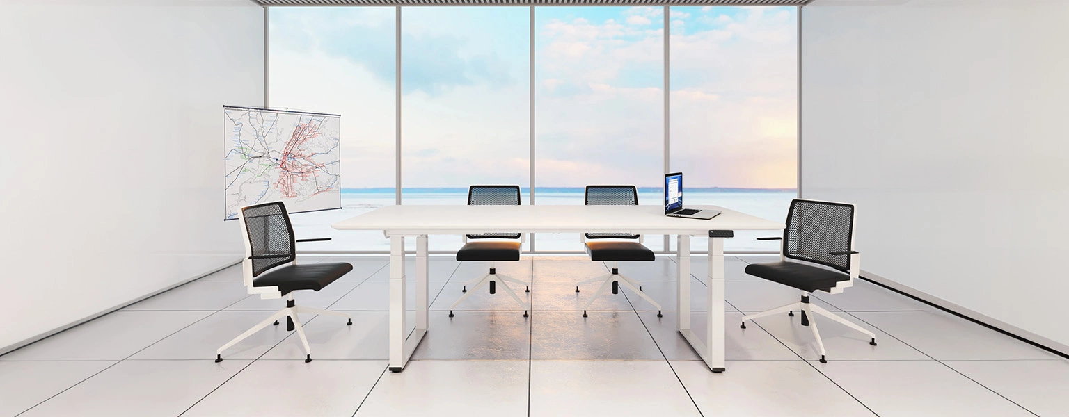 Stôl s elektrickým ovládaním, ktorý vám umožní vytvoriť stôl do jedálne, kancelárie alebo zasadačky.