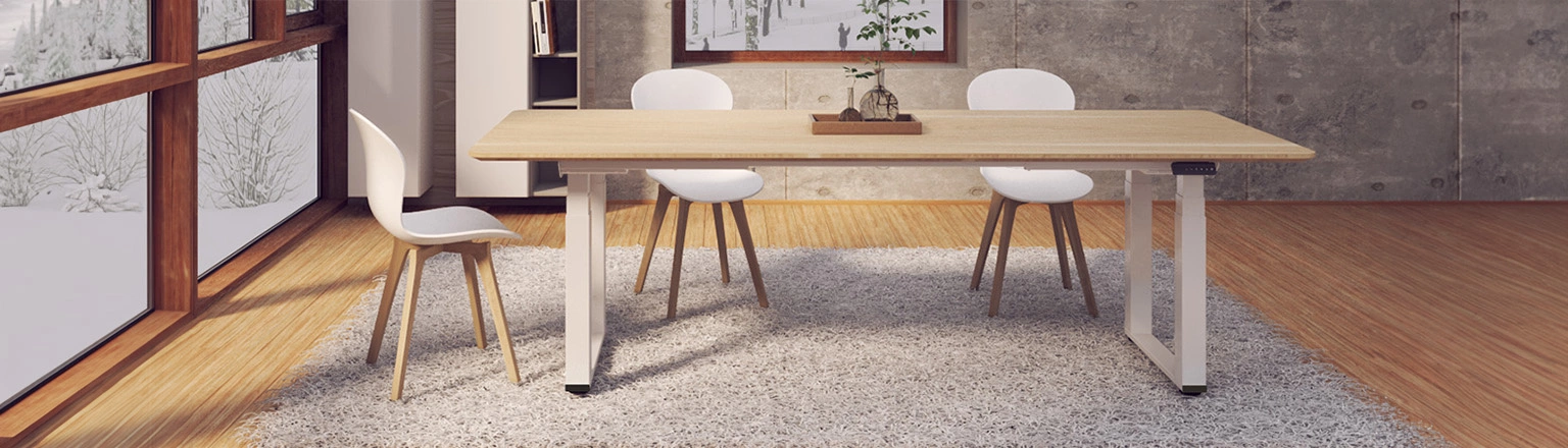 Elektryczny stelaż, który pozwala stworzyć stół do jadalni, biura lub sali konferencyjnej.