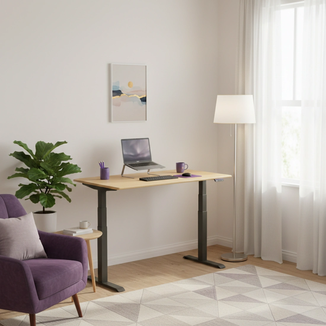 • Stelaż biurkowy z dwoma silnikami, który pozwala stworzyć ergonomiczne biurko i pracować zarówno w pozycji stojącej, jak i siedzącej. Reguluj wysokość blatu w zakresie od 62,5 - 127,5 cm. Nośność biurka do 140 kg. Kontroler z OLED i RGB.