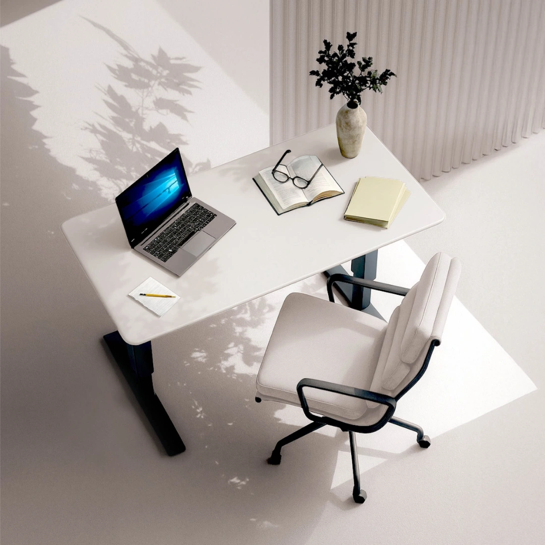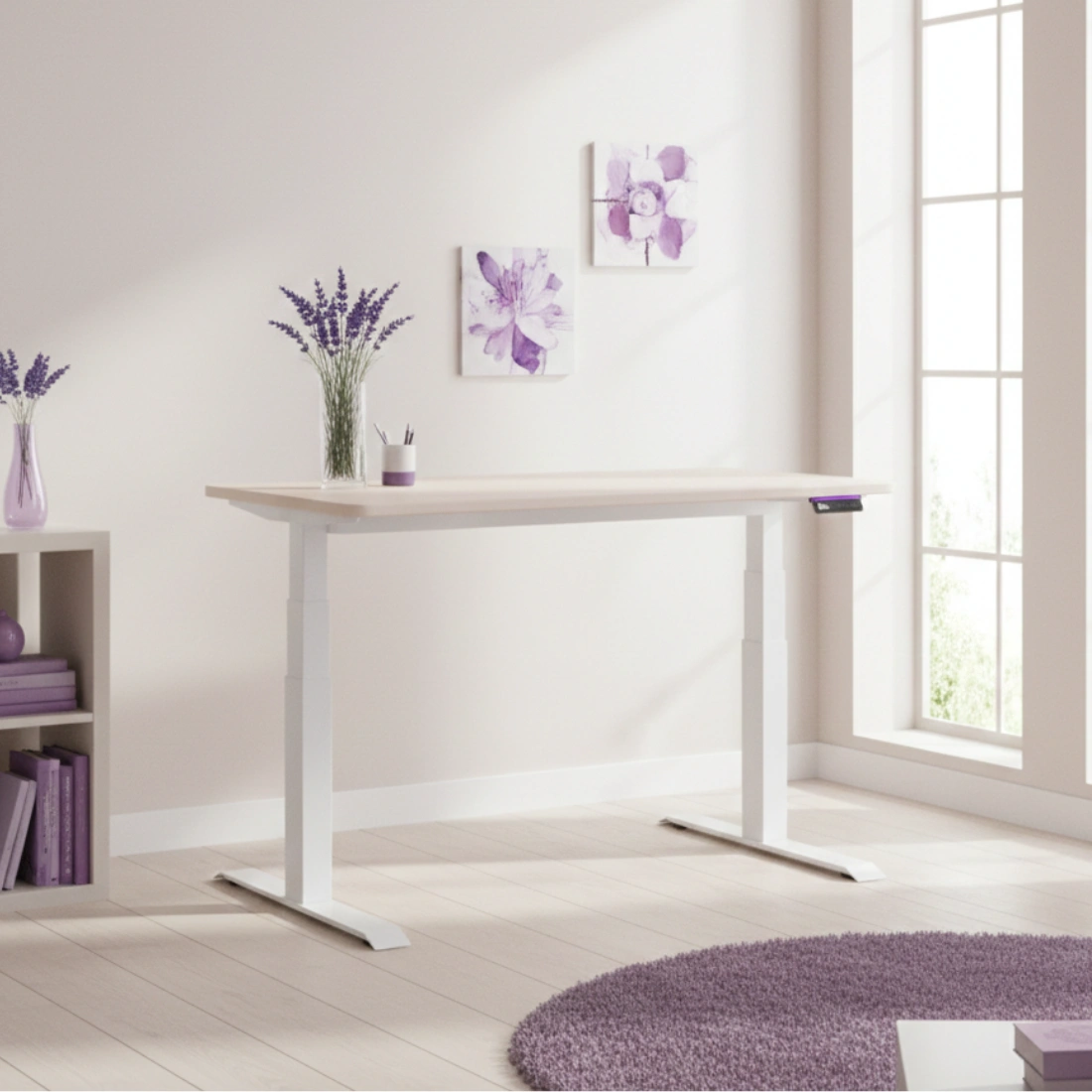 Dzięki wykorzystaniu 3 segmentów podnoszących stelaż, jest on stabilny i pozwala podnosić biurko na wysokość aż 127cm. Dzięki temu można pracować komfortowo zarówno w pozycji stojącej jak i siedzącej. Stelaż posiada prostokątny kształty kolumn, przez co sprawdzi się w każdych wnętrzach, również w tych nowoczesnych.