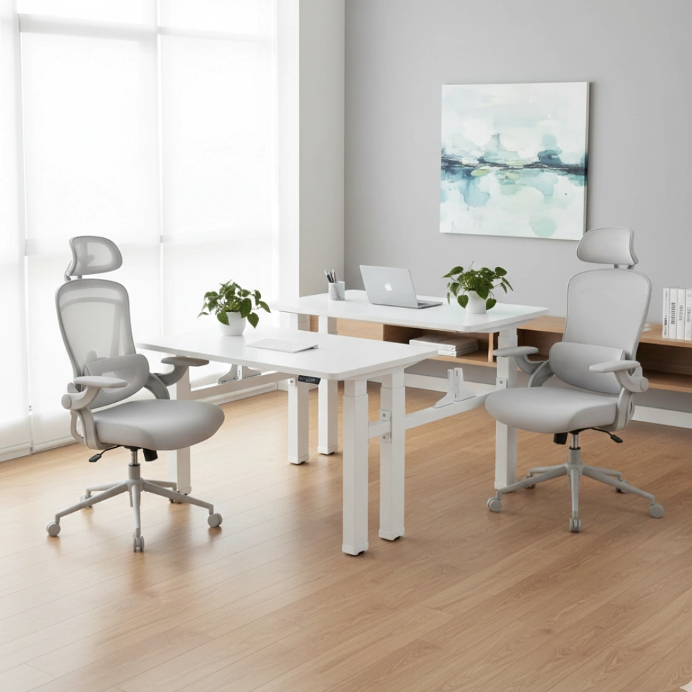 Pracując w biurze, spędzasz w nim co najmniej 8 godzin w ciągu dnia. Dlatego też, by uniknąć negatywnego wpływu pracy na Twoje zdrowie, biurko powinno spełniać wymogi ergonomiczne. Jednym z nich jest dopasowanie stanowiska pracy do wzrostu każdego pracownika z osobna. Jednak przy pracy zmianowej, trudno o wyregulowanie tradycyjnego biurka do konkretnych osób. Wszystko z uwagi na fakt, że na jednym stanowisku na ogół pracuje kilka osób. Z rozwiązaniem tego problemu przychodzi podwójny, elektryczny stelaż biurkowy Spacetronik 440W! Został on wyposażony w cztery silniki i dwie oddzielne przestrzenie na blat. Każda z przestrzeni jest, więc zasilana przez dwa mocne silniki. Dzięki temu za pomocą jednego stelaża zyskasz 2 w pełni indywidualne stanowiska pracy. Każdy będzie mógł dostosować je do swoich potrzeb.