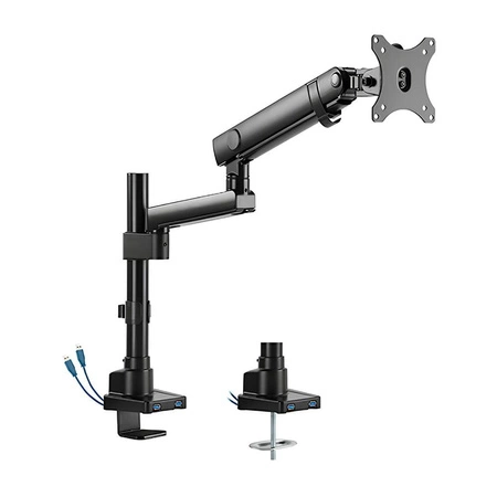 Veľkou výhodou stojana na monitor Spacetronik SPA-H112 oproti mnohým iným modelom je, že sa montuje na váš stôl. Možno to urobiť dvoma spôsobmi. Pomocou priechodky alebo svorky. Najmä druhá možnosť sa môže zdať mnohým ľuďom zaujímavá. Použitie svorky na upevnenie stolového držiaka si nevyžaduje žiadne vŕtanie. To znamená, že montáž nezanechá žiadne trvalé stopy. To znamená, že držiak budete môcť odpojiť a pripevniť na rôzne stoly. Tak často, ako budete chcieť. Bez obáv z poškodenia stola. Držiak bude kompatibilný so stolovými doskami s hrúbkou v rozsahu 10 ~ 50 mm.