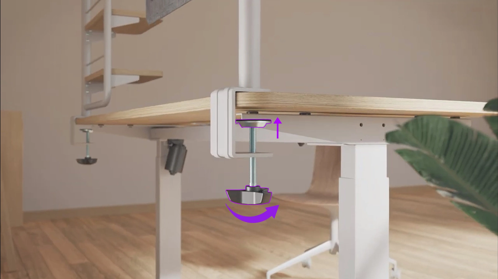 Upínacie konzoly, pomocou ktorých pripevníte police na stôl, si nevyžadujú vŕtanie. Stačí ich len utiahnuť tak, aby vyhovovali hrúbke vašej stolovej dosky. Upínače boli navrhnuté tak, aby sa mechanizmus zodpovedný za ich nastavenie nachádzal pod doskou stola. Nebude teda nijako nápadný.