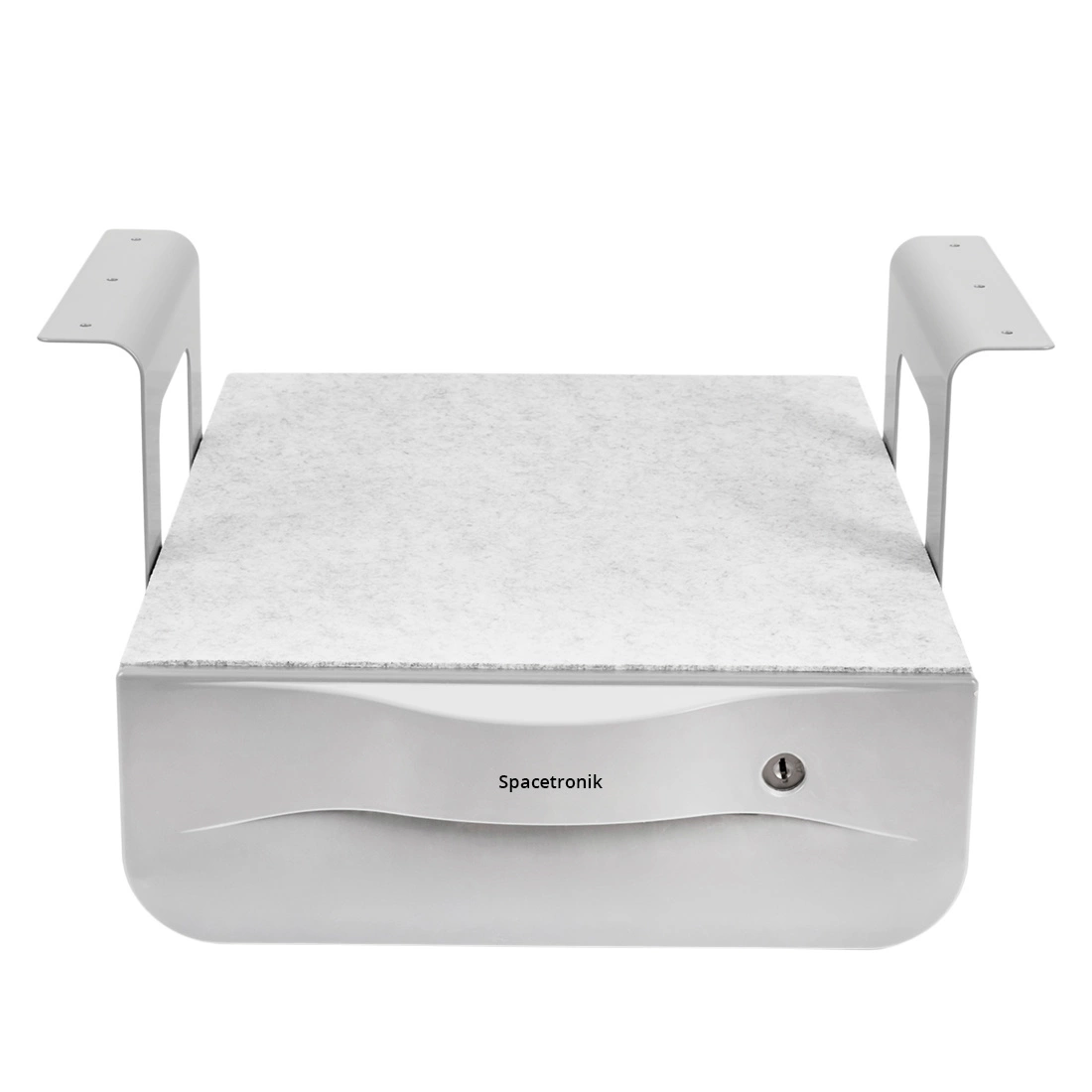 Dodaj dodatkowe miejsce do przechowywania przy swoim biurku dzięki zamykanej szufladzie podblatowej Spacetronik. Stalowa konstrukcja sprawia, że jest solidna i stabilna. Od teraz Twoje wartościowe przedmioty będą bezpieczne, gdyż szuflada podbiurkowa jest zamykana na klucz i bez trudu pomieści nawet notebooka. Nowoczesny, ponadczasowy design powouje, że szuflada wkomponuje się w każde wnętrze i będzie współgrać z Twoim biurkiem. Wymaga minimalnego montażu.