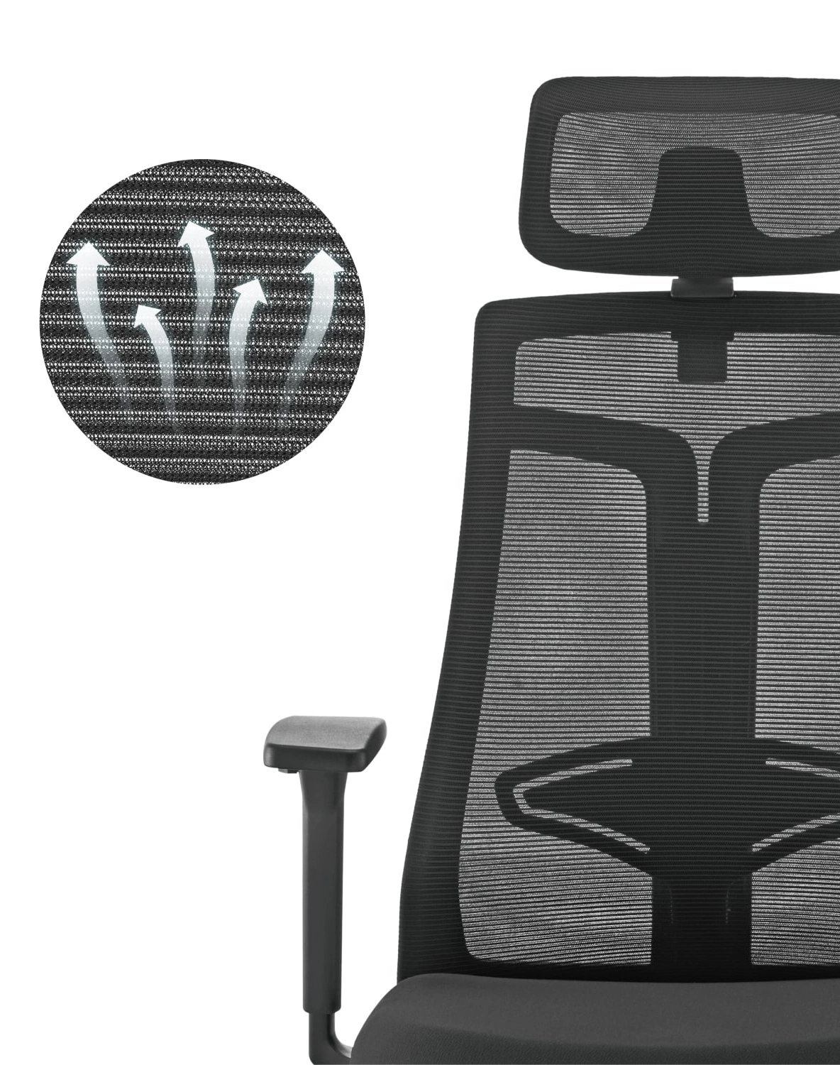 - Priedušná sieťovina MESH na operadle a opierke hlavy