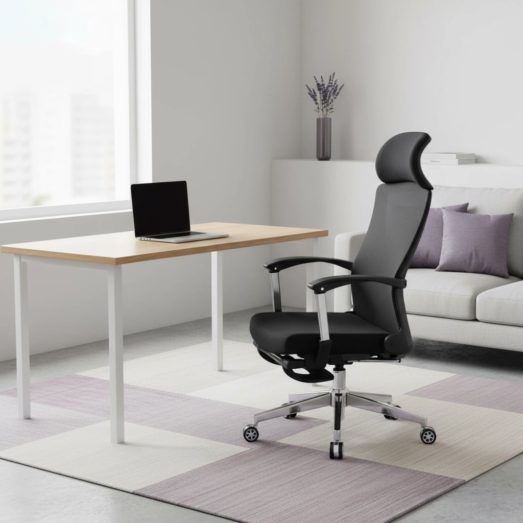 Wysoka jakość elementów, z których został wykonany fotel do biurka, przekłada się na prestiżowy efekt wizualny. Zastosowanie oddychającej siatki zapewnia dodatkową cyrkulację powietrza, maksymalizując komfort użytkowania. Siedzisko oraz zagłówek zostały wyściełane przyjemną tkaniną z pianką o wysokiej gęstości wewnątrz.