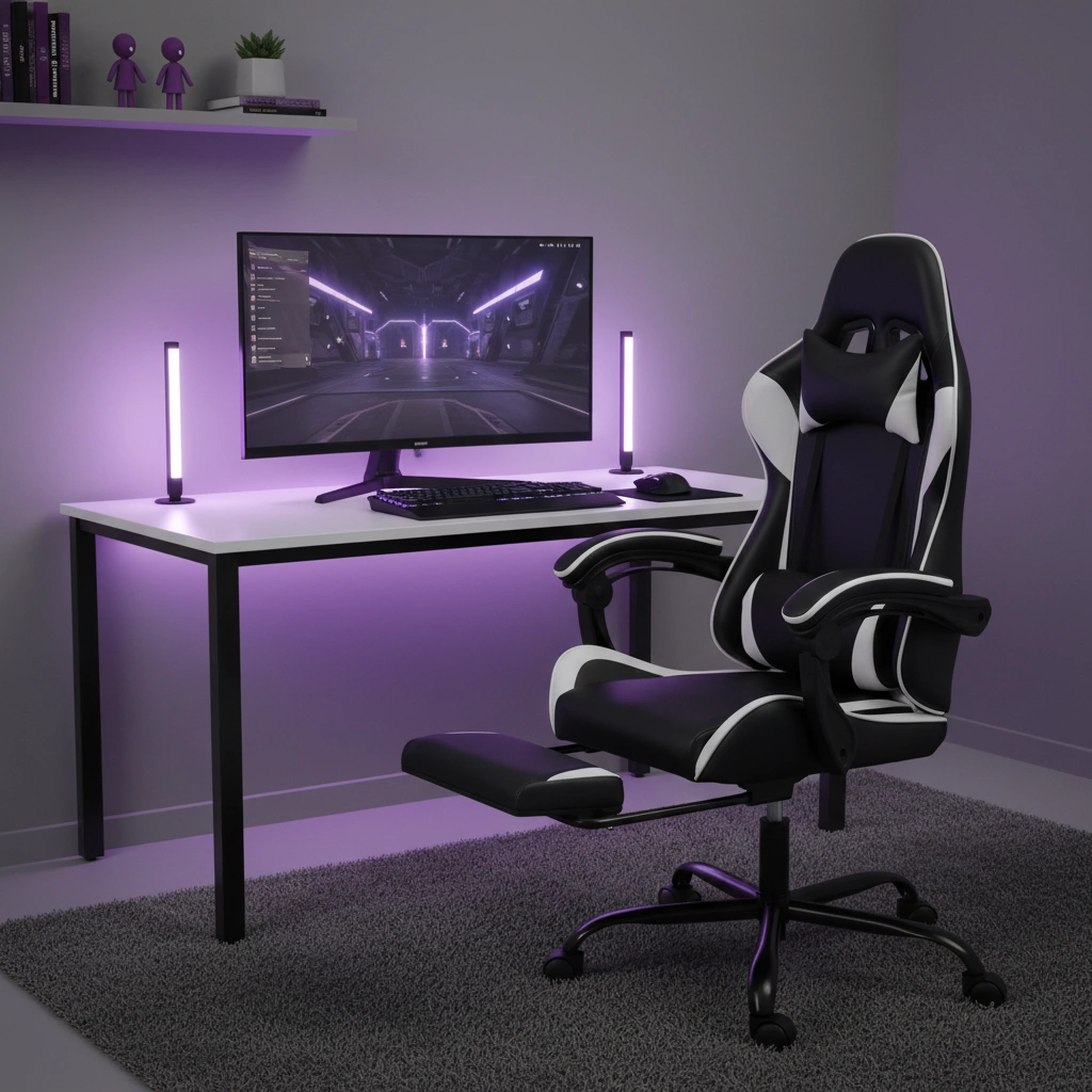 Pohodlná herná kancelárska stolička s podnožkou a bedrovými a krčnými vankúšmi Spacetronik Rally