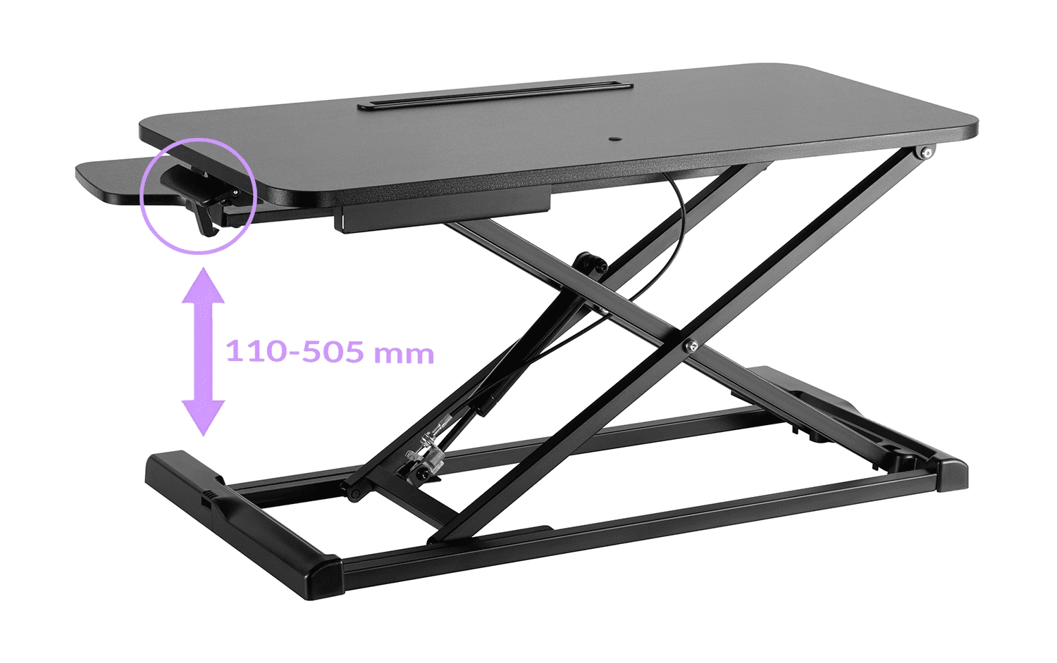 Stolový nadstavec Spacetronik SPR-123MB vám zaručí veľký rozsah nastavenia. Výšku môžete plynule meniť v rozsahu od 110 do 505 mm. Preto bez ohľadu na vašu výšku nebude nastavenie nadstavca problémom. Pomocou jedinej páčky budete môcť opakovane meniť výšku, v ktorej je umiestnený.