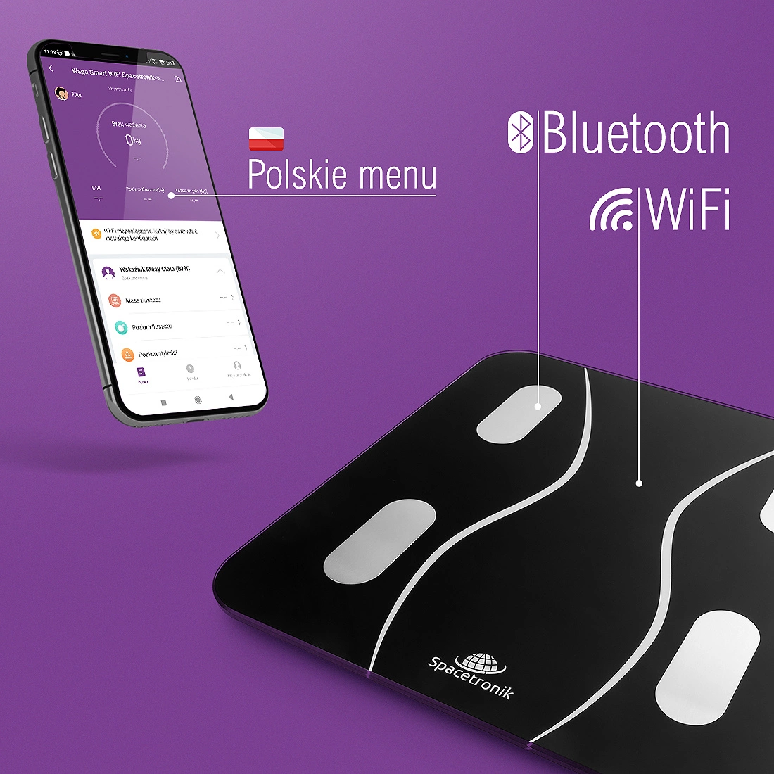P oľské menu - všetky popisy sú v poľštine -Wi-Fi a Bluetooth - zariadenie možno pripojiť dvoma spôsobmi - Vysoká kvalita - váha kombinuje dizajn a odolnosť - do 180 kg - Rýchle meranie - všetko trvá menej ako 10 sekúnd