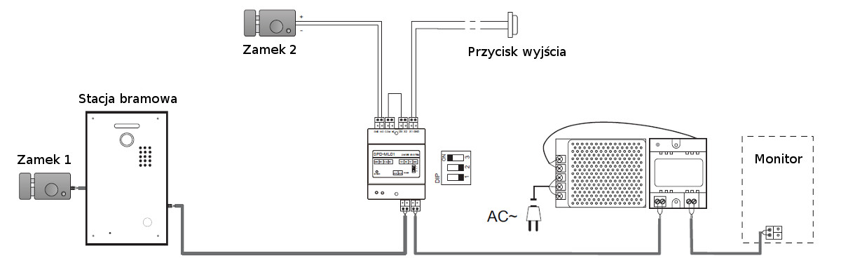 Przykładowy schemat podłączenia modułu otwarcia dodatkowego zamka