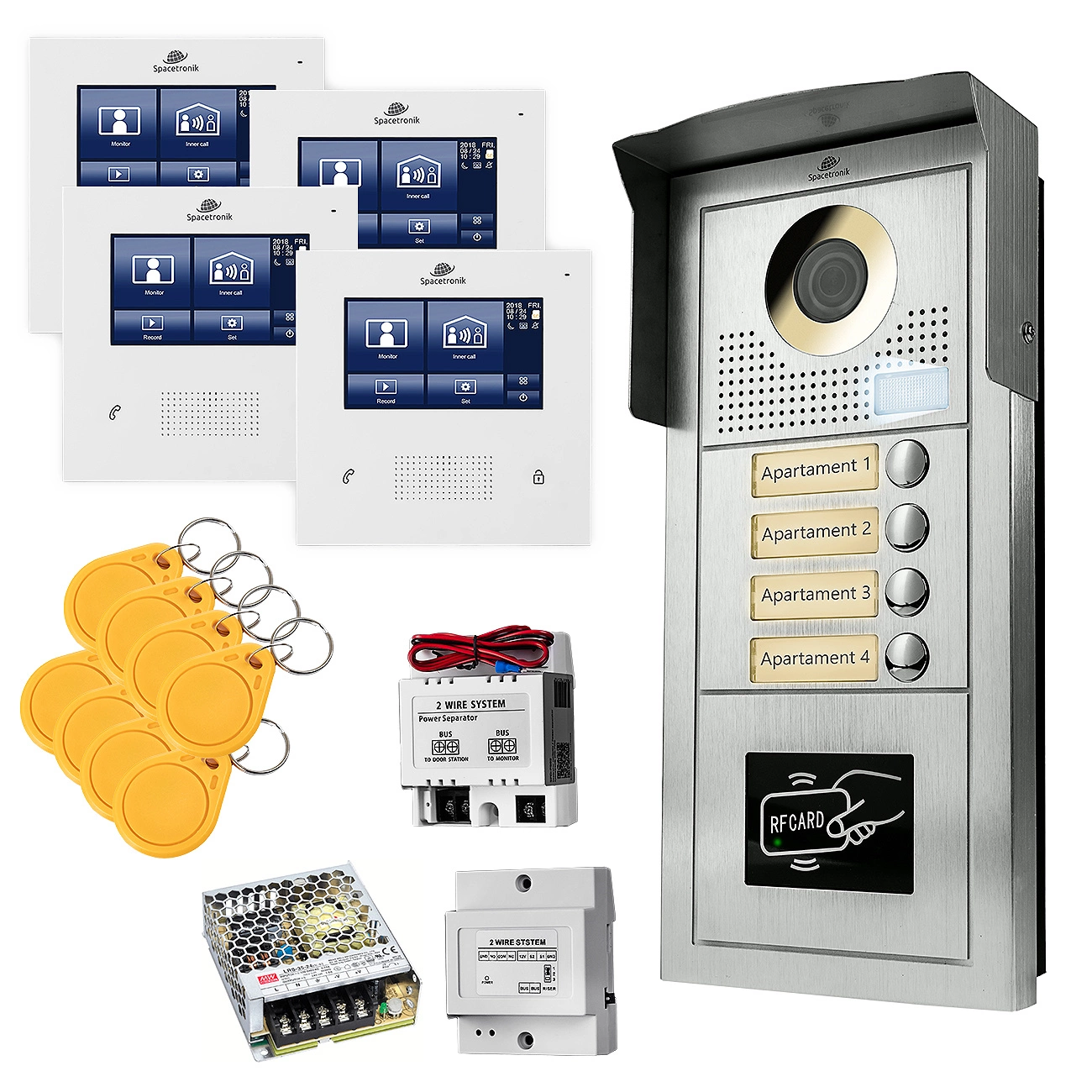 Zestaw wideodomofon czterorodzinny z monitorami dotykowymi 4,3" Spacetronik DiO SPD-DS914 NFC + 4x SPD-M434