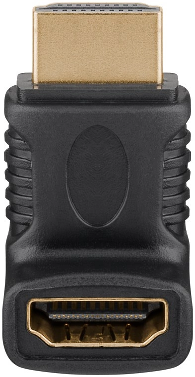 Uhlový adaptér HDMI umožňuje pripojiť kábel do zásuvky na ťažko prístupných miestach. Adaptér podporuje štandard 2.1, rozlíšenie 8K pri 60 Hz. Čierna farba s pozlátenými kontaktmi.