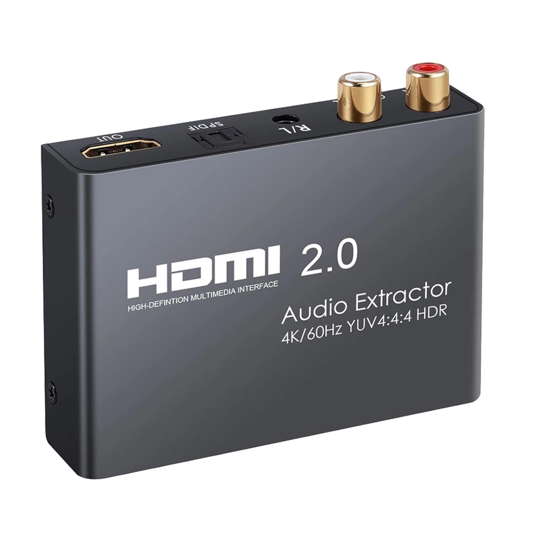 Extractor HDMI na HDMI + Audio (R/L+SPDIF) pozwala na podłączenie urządzenia wysyłającego sygnał audio i video (tuner, konsola, dvd, blu-ray) do telewizora kablem HDMI. Dodatkowo można wyodrębnić sygnał audio z urządzenia i przesłać go do amplitunera kina domowego lub innego tego typu urządzenia. Dzięki takiemu rozwiązaniu dźwięk będzie słyszalny standardowo z głośników telewizora i dodatkowo z drugiego źródła po włączeniu amplitunera. Ciekawe rozwiązanie gdy chcemy panować i sami decydować kiedy dźwięk ma być słyszalny z danego urządzenia. Mozliwośc przełączania wyjścia dźwieku 2.0 lub 5.1.