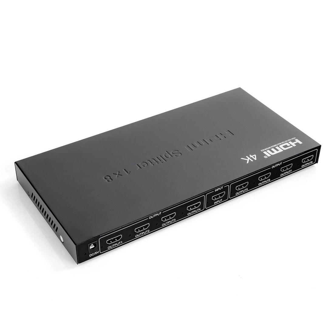 Rozdeľovač HDMI 1x8 umožňuje distribuovať signál HDMI z jedného zdroja do 8 prijímačov (TV, monitorov atď.). Zariadenie prenáša obraz vo veľmi vysokej kvalite Ultra HD 4K a plnom 3D. Tento výrobok má schopnosť vyrovnávacej pamäte signálu, ako aj jeho zosilnenia. Je ideálny do konferenčných miestností na distribúciu signálu z jedného zdroja na 8 obrazoviek alebo monitorov. Zariadenie je ideálne na pripojenie HD zariadenia (satelitný prijímač, DVD prehrávač, počítač, konzola) k televíznym prijímačom vybaveným konektormi HDMI.