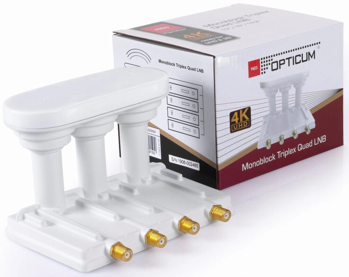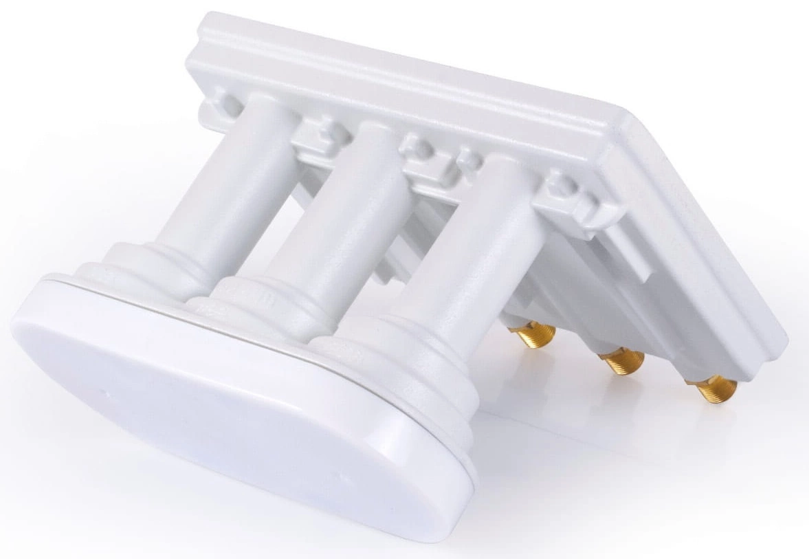 Konwerter monoblock TRIPLEX TWIN 3 stopnie przeznaczony do odbioru programów z trzech satelit oddalonych od siebie o 3 stopnie, np. system ASTRA niezależnie na czterech tunerach sat.