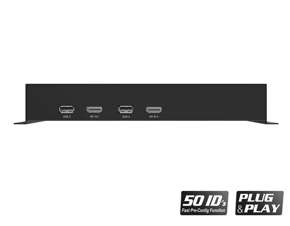 Możliwość podłączenia czterech źródeł sygnału HDMI oraz zmodulowania ich do postaci czterech kanałów, dwóch cyfrowych multipleksów DVB-T / DVB-C / ISDB-T MPEG-4.