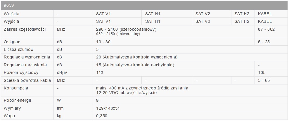Jevhodný pre 2 širokopásmové LNB alebo 1 LNB Quattro. Využíva automatické riadenie zosilnenia (AGC) a automatické riadenie sklonu (ASC).