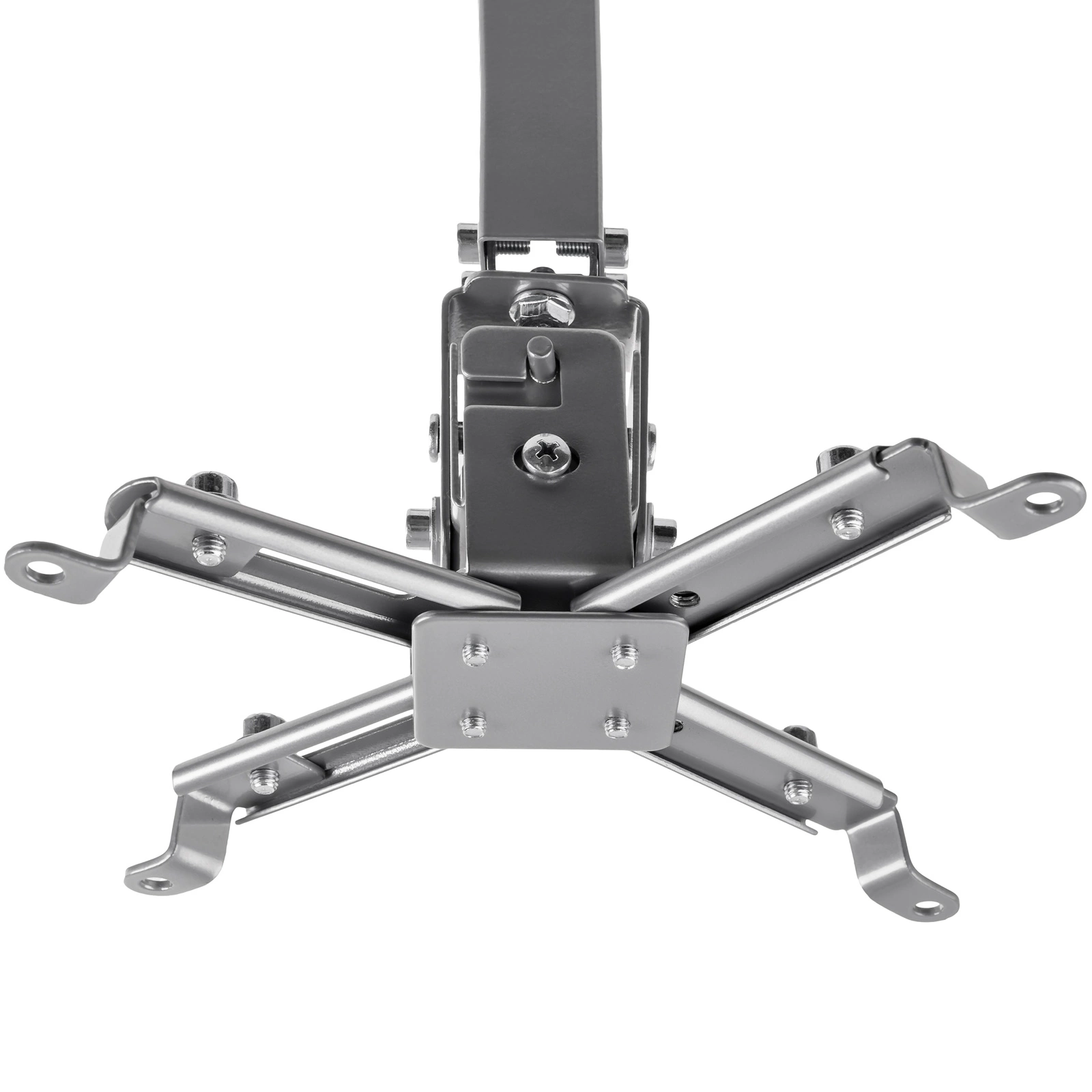 Stropný držiak projektora SPA-P01S je vyrobený z kvalitnej ocele striebornej farby. Vďaka tomu je záves na projektor veľmi robustný a má maximálnu nosnosť až 20 kilogramov. Na druhej strane 4 montážne nožičky zabezpečujú dobré upevnenie výrobku a jeho bezpečné držanie na stene alebo strope.