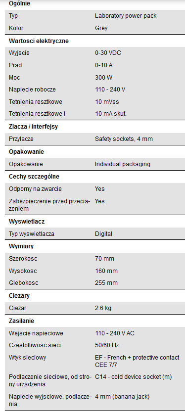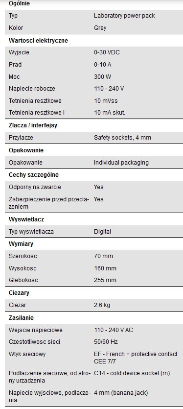 - Regulowany zakres napięcia: 0?30 V; zakres natężenia prądu: 0?10 A