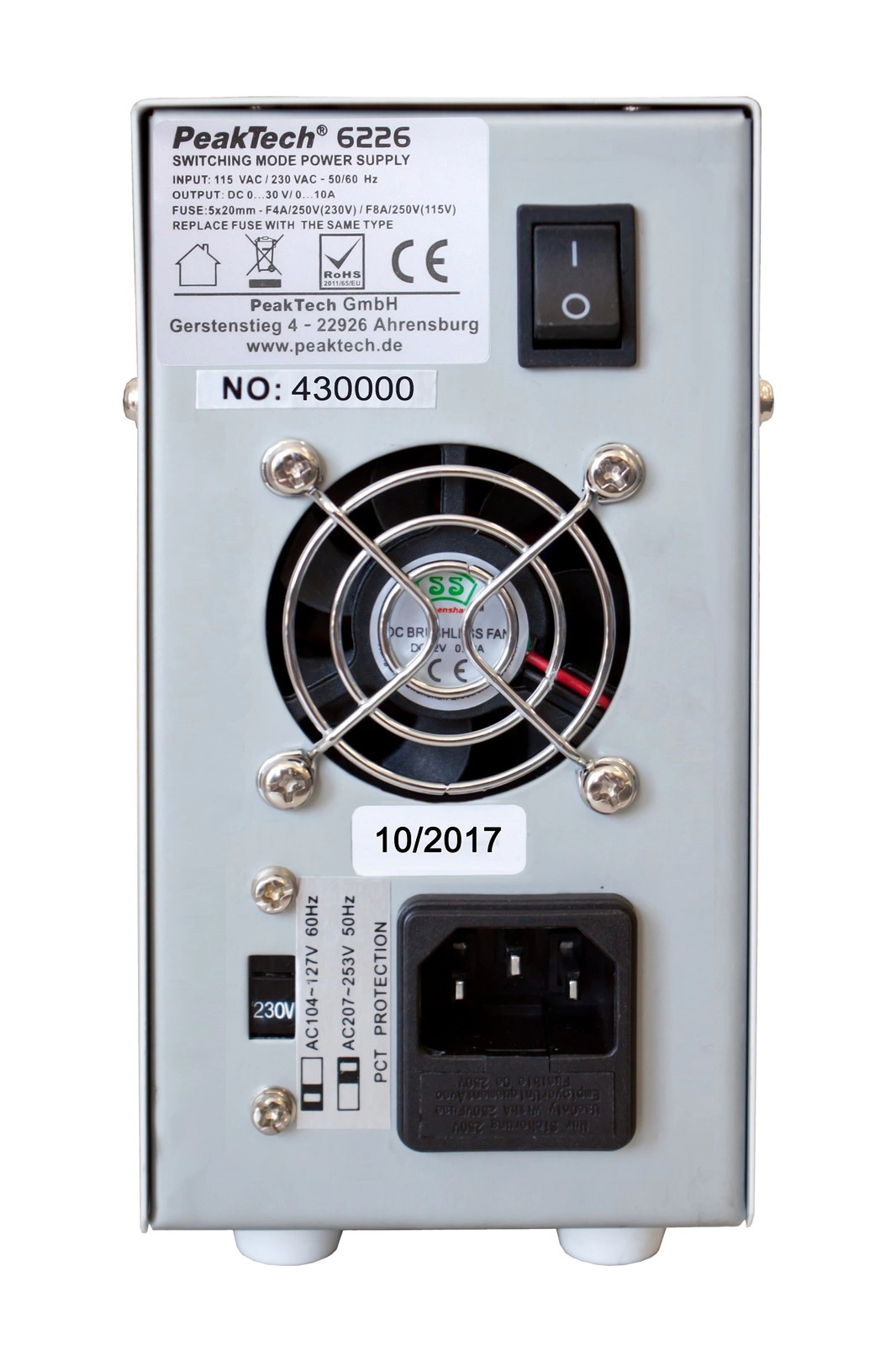 Ustawianie wartości prądu i napięcia odbywa się za pomocą potencjometrów cyfrowych, przy czym obie wartości można ustawić również po wyłączeniu gniazd wyjściowych. Po naciśnięciu odpowiedniego przełącznika obrotowego dla prądu lub napięcia rozdzielczość ustawienia można przełączyć z 10 mA na 100 mA lub z 10 mV na 1 V. Czytelny wyświetlacz, łatwa obsługa, niewielka waga oraz wąska konstrukcja to doskonałe cechy w przypadku stosowania zasilacza do celów edukacyjnych i serwisowych.