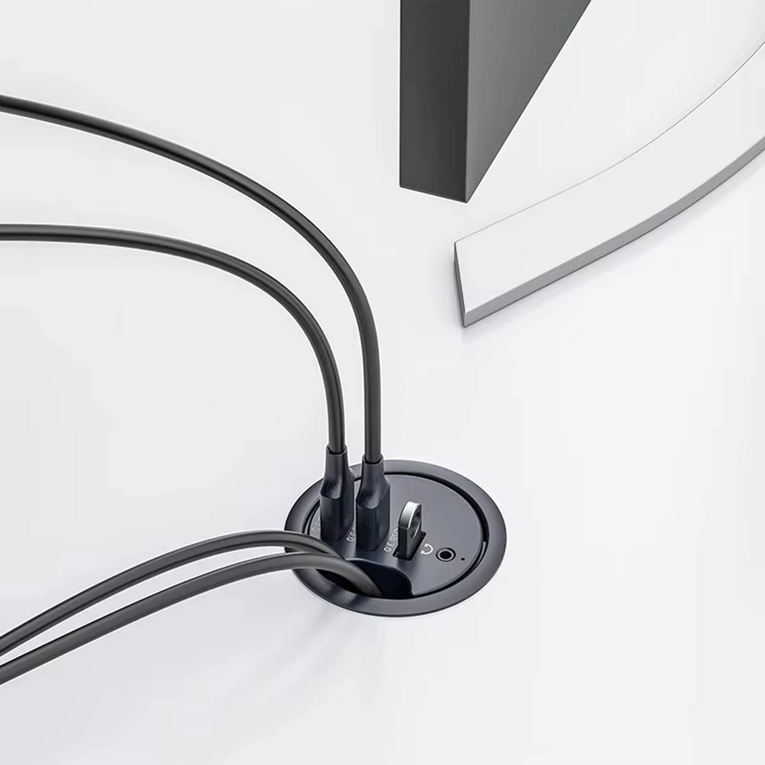 Mediaport Spacetronik ERGOLINE SPS-R1D3B je moderné riešenie, ktoré sa používa v obchodoch, výstavných miestnostiach, konferenčných miestnostiach, kanceláriách, ale aj v domácnostiach. Je vyrobený z vysoko kvalitných komponentov. Výrobok je určený na vnútornú inštaláciu do stolov, pracovných dosiek a stolov, a to vo vertikálnej aj horizontálnej polohe, pričom poskytuje prístup k zásuvkám. Tento kruhový mediaport je vybavený 1 zásuvkou 110-250 V (germániový typ) a duálnou nabíjačkou USB pozostávajúcou z USB-A a USB-C.