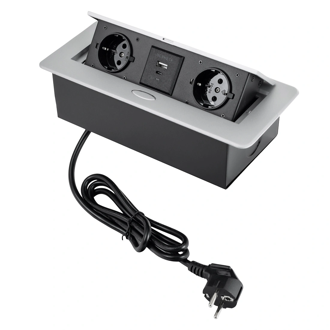 Mediaport Spacetronik ERGOLINE SPS-D24S V2 to nowoczesne rozwiązanie, które znajduje zastosowanie w sklepach, salonach sprzedaży, salach konferencyjnych, biurach a także w domu. Naciśnij przycisk, a gniazda płynnie się otworzą. Wykonany z aluminium i wysokiej jakości komponentów. Produkt jest przeznaczony do montażu wewnątrz pomieszczeń w biurkach, blatach i stołach, zarówno w pozycji pionowej jak i poziomej, zapewniając dostęp do gniazd. Mediaport został wyposażony w 2 gniazda 110-250 V (typ Schuko) oraz podwójną ładowarkę USB.
