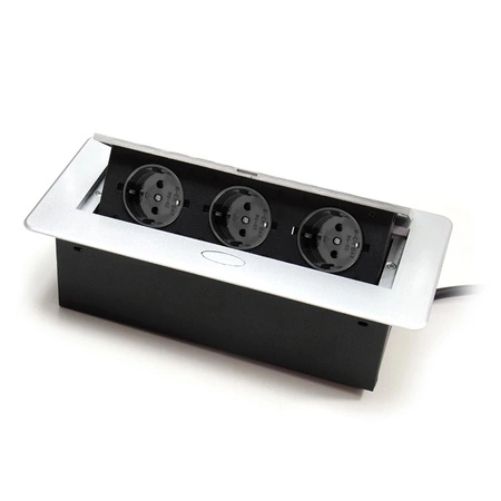 • Elegantný mediaport na pracovnej doske s otváraním pomocou tlačidla. Má 3 elektrické zásuvky (typ Schuko). Dĺžka kábla 1,5 m. V striebornej farbe