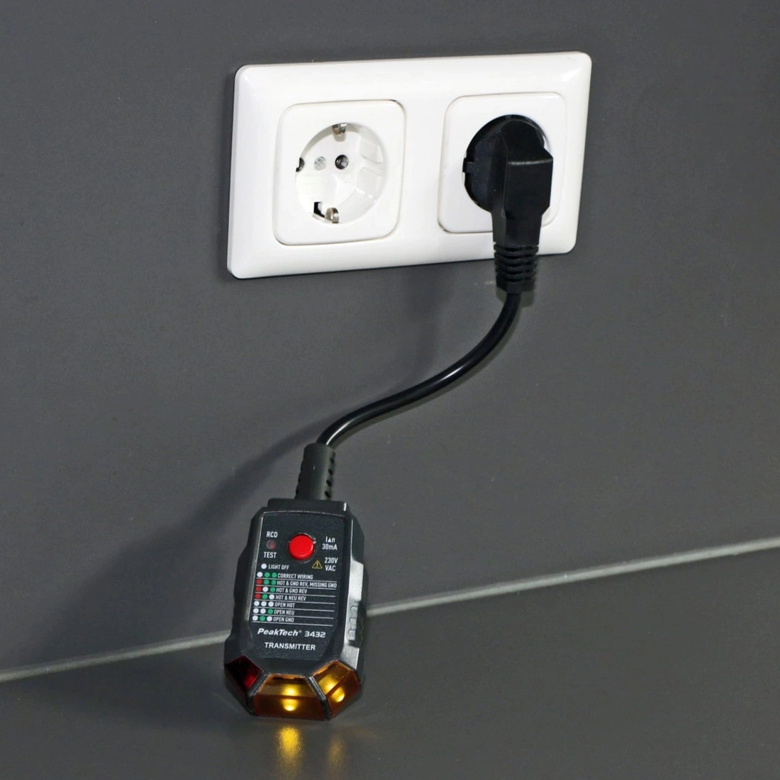 Tester do identyfikacji bezpieczników i gniazd z testerem RCD dla sieci typu TN-CS PeakTech 3432