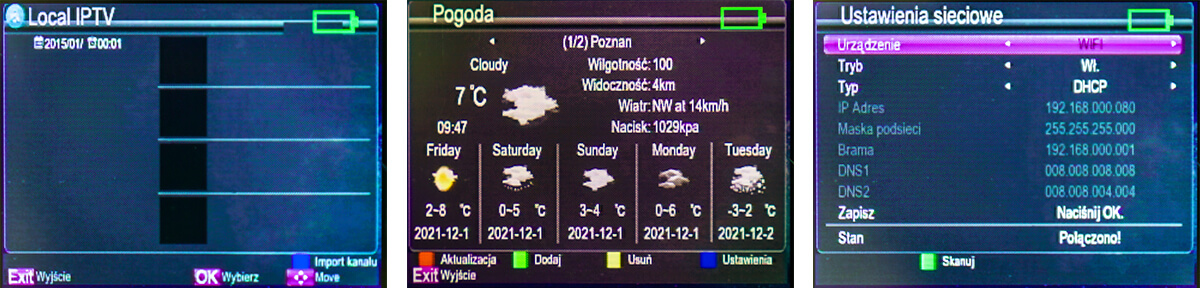 Miernik obsługuje WiFi po podłączeniu zewnętrznej antenki USB WiFi z chipset RT5370 co pozwala na uzyskanie dostępu do dodatkowych funkcji: