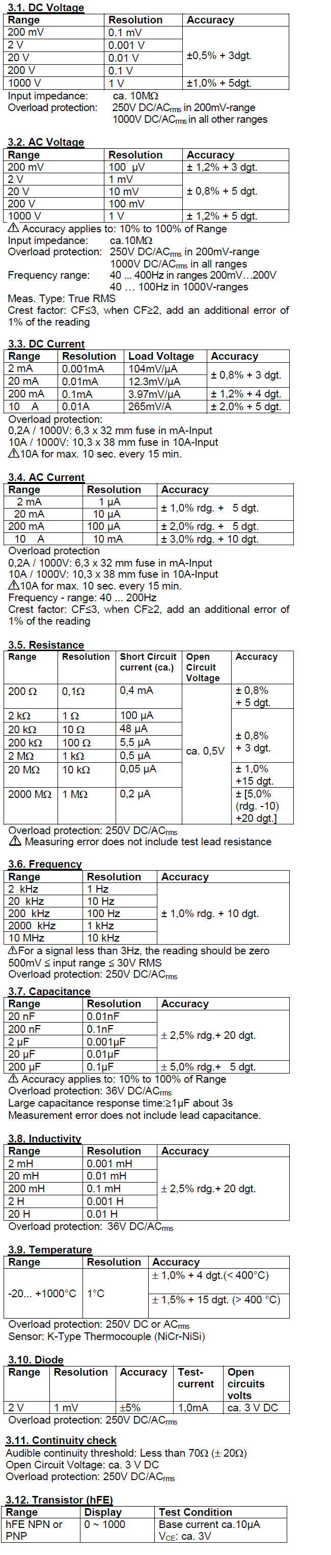 Nowy PeakTech 2005A oferuje wiele funkcji pomiarowych dla zmiennych mierzonych elektrycznie dla każdego użytkownika z przemysłu, rzemiosła, szkolenia, hobby i laboratorium. Został wyprodukowany zgodnie z najnowszymi aspektami rozwoju i ma podwójnie izolowaną, formowaną wtryskowo obudowę z gumową powłoką oraz odchylaną podstawkę z tyłu, którą można zdjąć w celu wymiany baterii. Bezpieczniki znajdują się również pod stojakiem, jeśli trzeba je wymienić. Urządzenie jest zasilane baterią i posiada ekran LCD o wysokości znaków 32 mm. Ręczny wybór zakresu umożliwia bardzo szybki czas reakcji, a zmierzone wartości można łatwo odczytać na podświetlanym wyświetlaczu. PeakTech 2005 A może być używany do pomiaru DCV, ACV, DCA, ACA, rezystancji, pojemności, diody, tranzystora, ciągłości, temperatury, częstotliwości i indukcyjności, co stwarza szeroki zakres zastosowań. Ze względu na wysoką kategorię przepięciową CAT III 1000V, możesz bezpiecznie używać tego urządzenia w instalacjach i systemach elektrycznych.