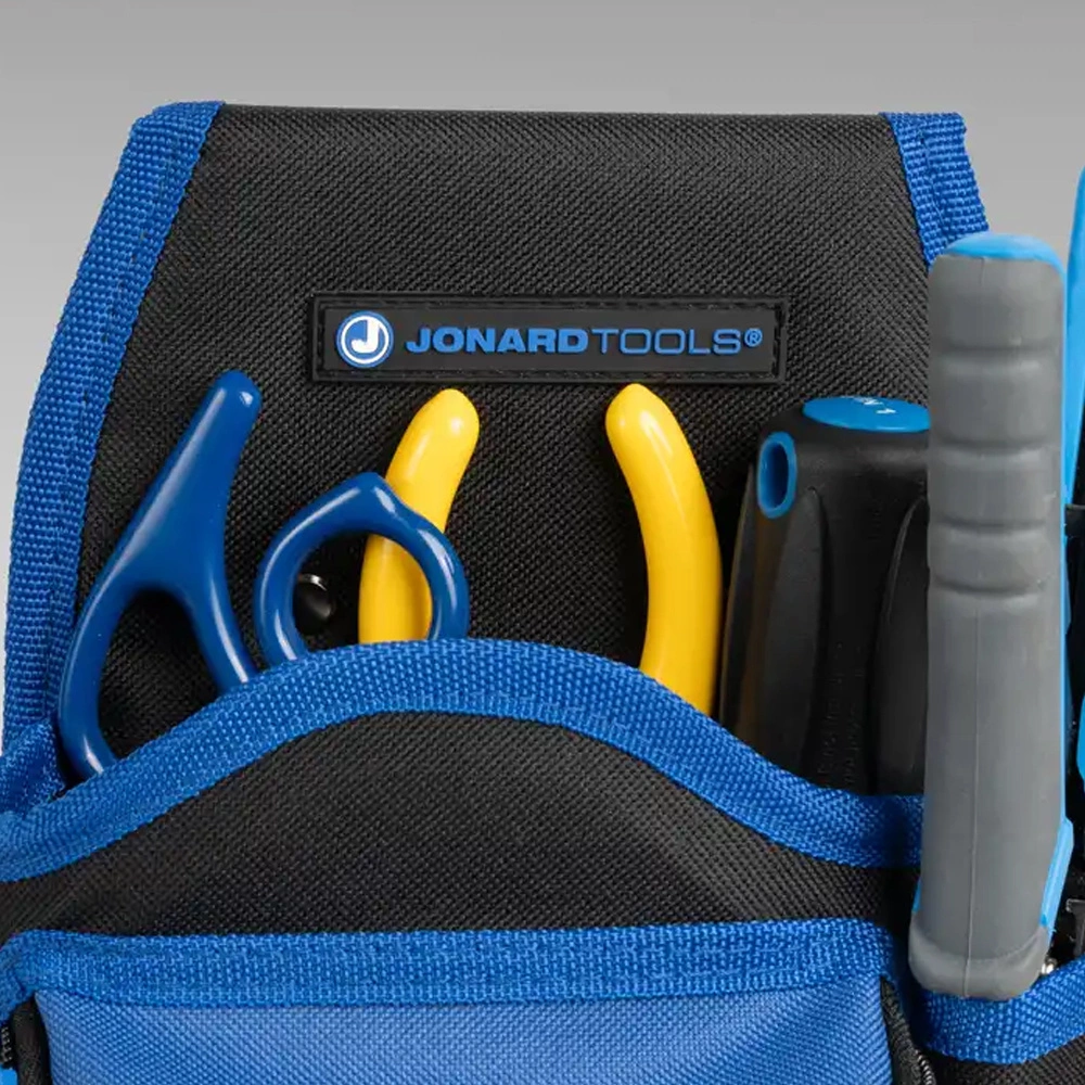 - BP-100 Plecak Jonard Tools Technician's Tool Bag ma 36 kieszeni organizerów i 12 pasków do przechowywania wszystkich narzędzi, a wytrzymała, wodoodporna podstawa chroni go przed czynnikami atmosferycznymi. Posiada również twardą, uformowaną przednią kieszeń na delikatne przedmioty, takie jak okulary ochronne, oraz przedni zamek do przechowywania luźnych części.