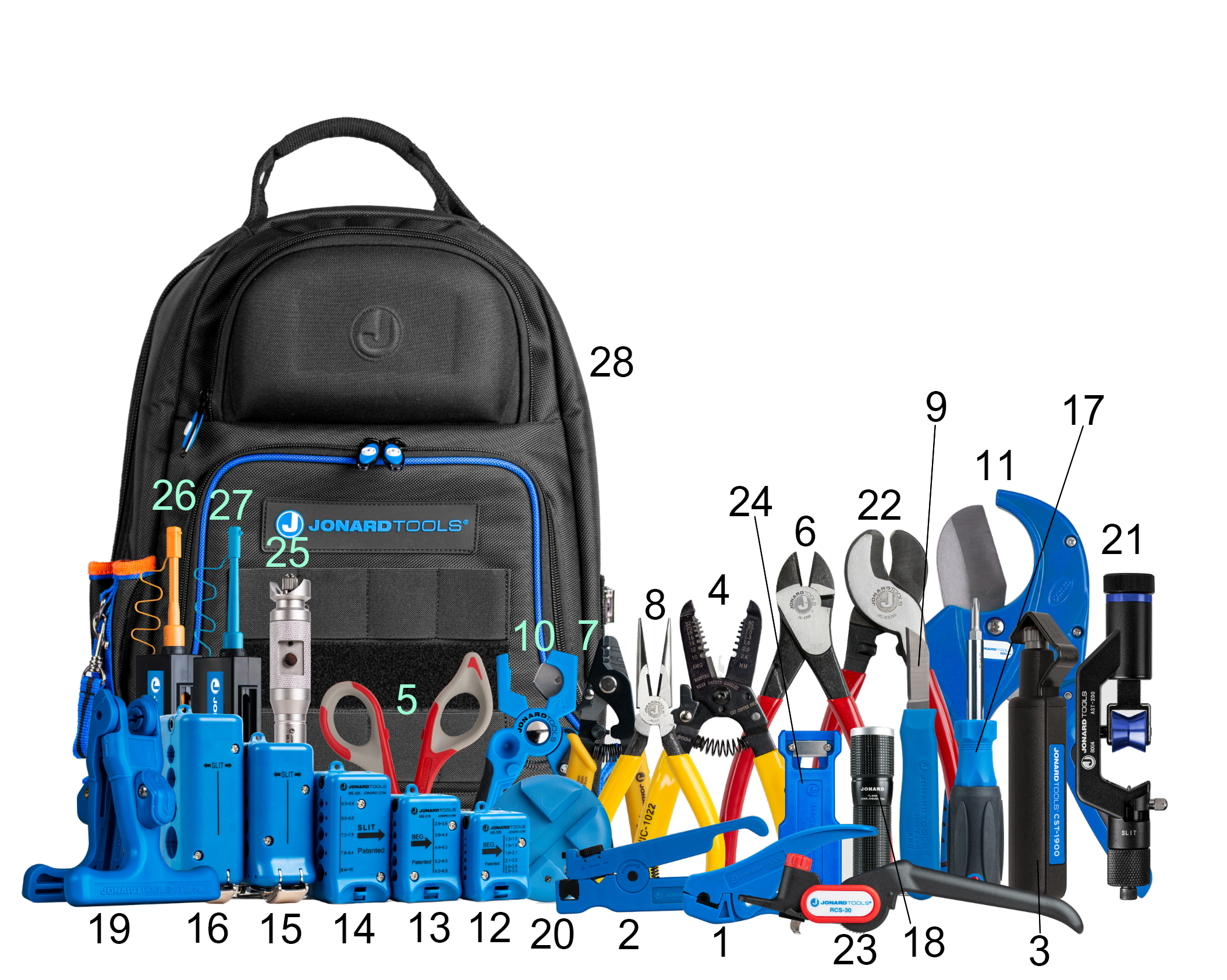 Jonard Tools TK-199B Ultimate Backpack Fibre Prep Kit zapewnia szereg narzędzi potrzebnych do uzyskania dostępu i przygotowania kabla światłowodowego do zakończenia. Zawiera wytrzymały plecak i różnorodne narzędzia do wielu zastosowań, takich jak zdejmowanie izolacji, sprawdzanie łączności, cięcie, czyszczenie i przygotowywanie kabla światłowodowego. Ten zestaw narzędzi jest idealny dla każdego technika światłowodowego i nie tylko.Zawiera wszelkiego rodzaju obieraki i ściągacze izolacji, cęgi do cięcia kanałów, poprawiający w znacznym stopniu ergonomię obróbki przewodów, dzięki niemu praca staje się przyjemniejsza, bardziej dokładna oraz szybsza.