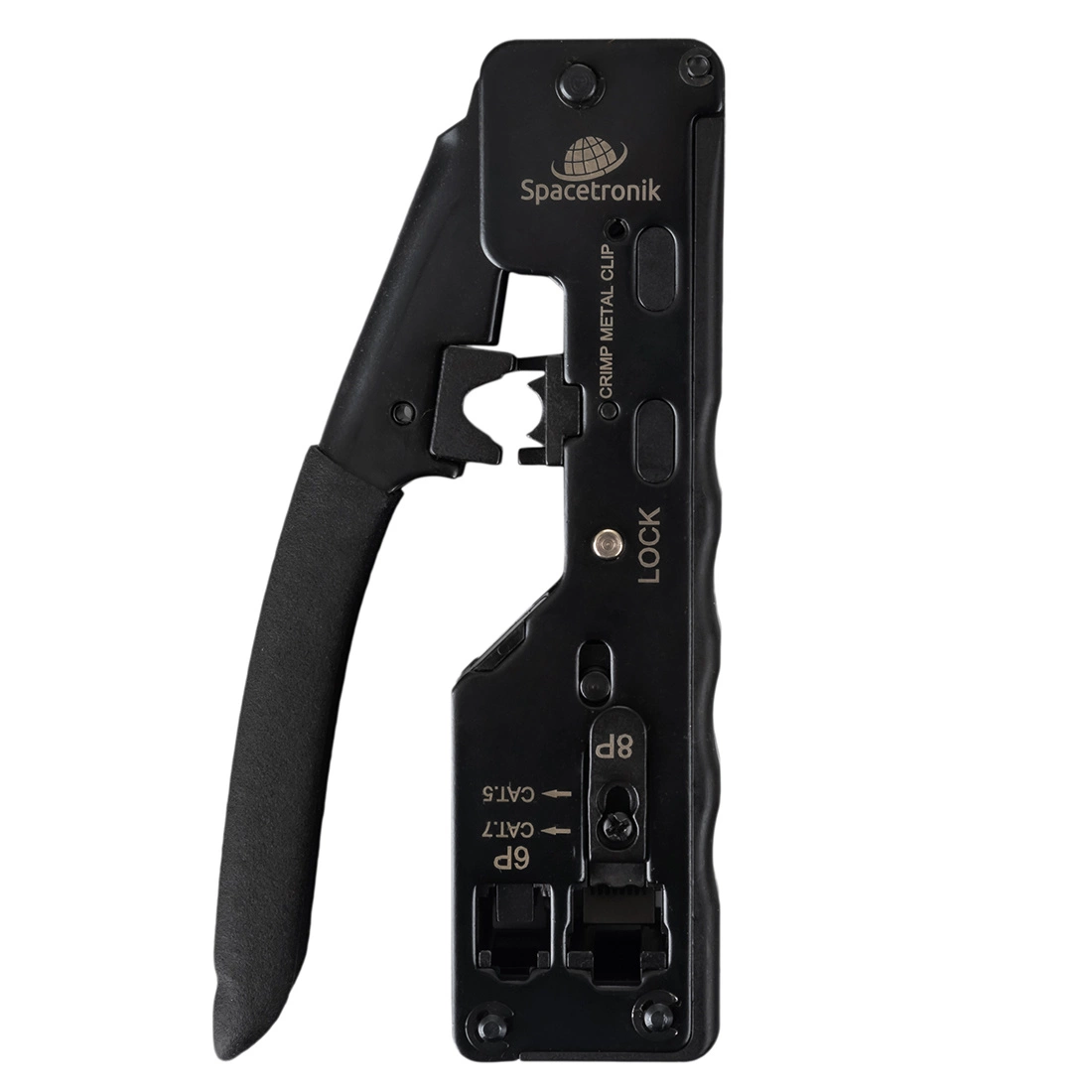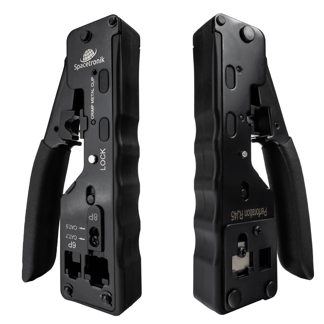 • Vysokokvalitná priechodná lisovacia kliešť od spoločnosti Spacetronik je inovatívne a pohodlné riešenie na lisovanie zástrčiek RJ45. Je vybavená funkciou krimpovania na obrazovke.