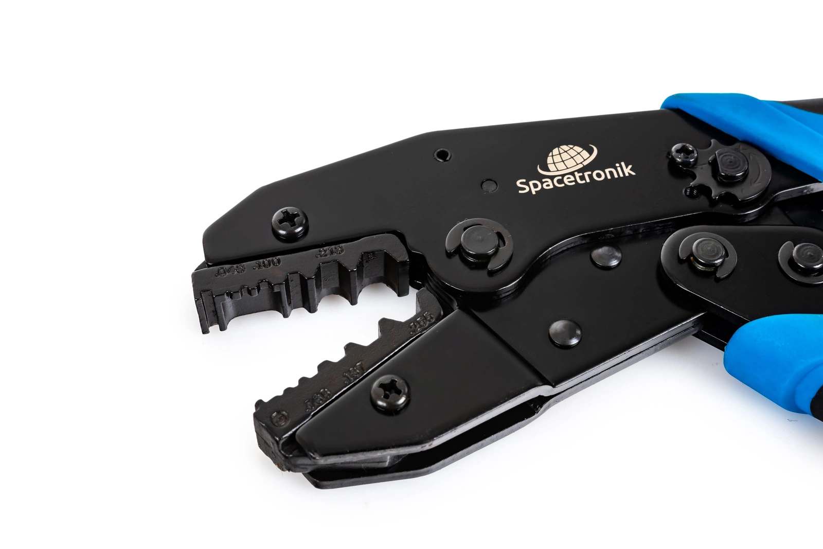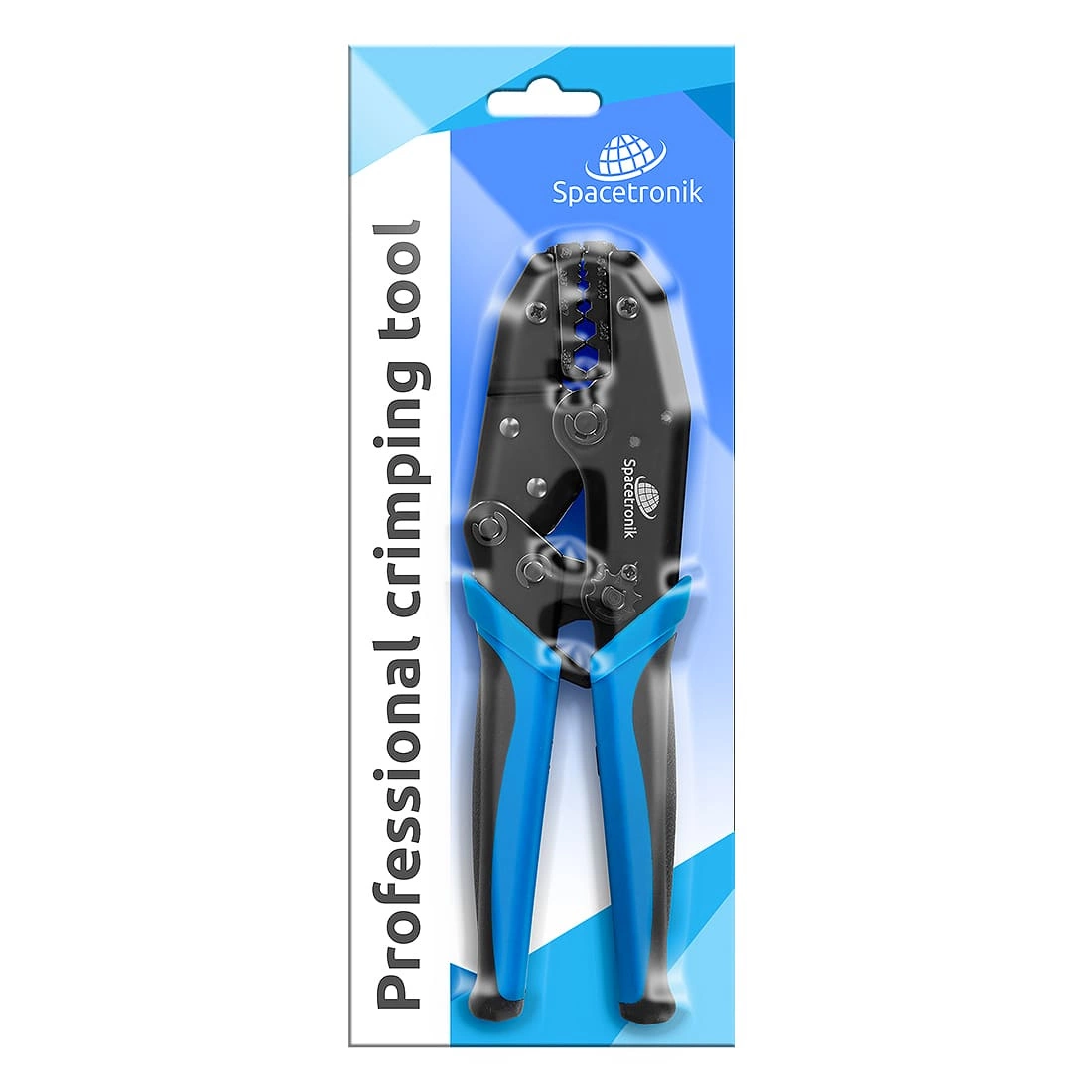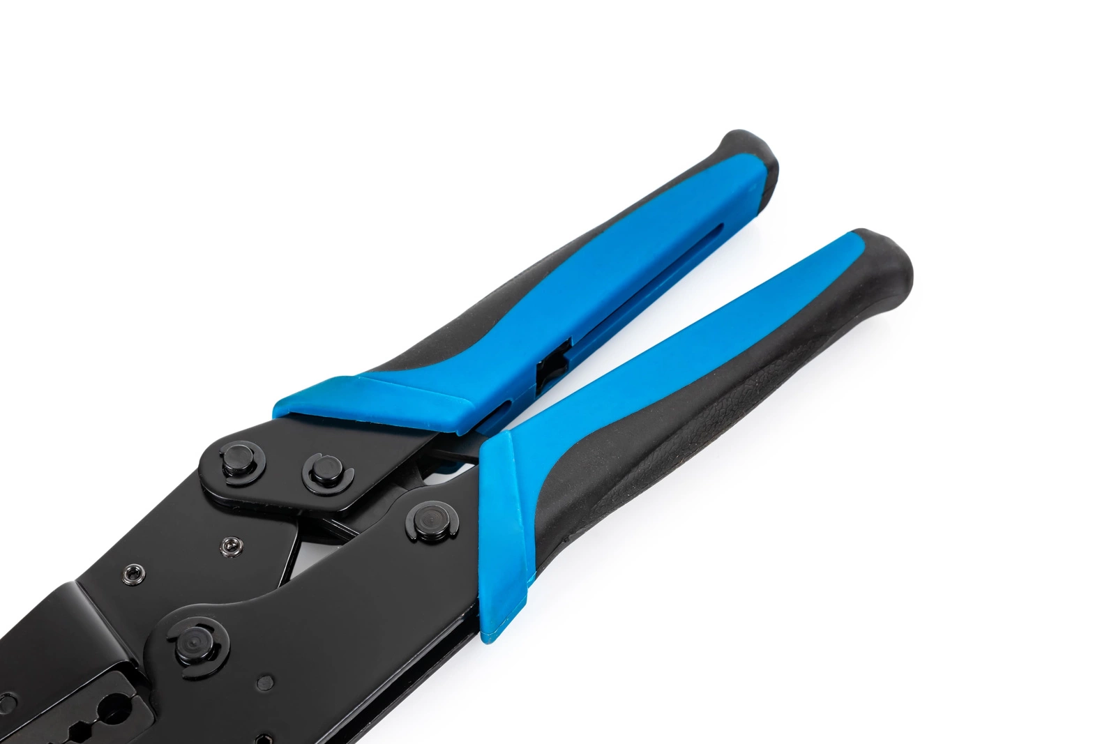 Krimpovací stroj na konektory CP-S106 je krimpovacie zariadenie s protišmykovou rukoväťou na bezpečné uchopenie, na lisovanie káblových koncoviek s obvodovým prierezom 1,09 - 1,73 - 2,54 - 3,48 - 5,41 - 6,48 mm? (.043" - .068" - .100" - .137" - .213" - .255"). Ideálne pre konektory RG58, 59, 62, 174. Použitie zariadenia nevyžaduje veľkú silu a môžete ho ľahko používať jednou alebo oboma rukami. Krimpovacia kliešť na káble CP-S106 je vybavená blokovacím mechanizmom, takže môžete kontrolovať, ako veľmi je zariadenie otvorené. Hydraulický lis je určený napríklad na monitorovanie svoriek, hláv BNC alebo optických káblov. Zatiaľ čo modro-čierne farebné vyhotovenie vytvára oku lahodiaci dizajn.