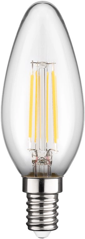 Tradičná LED žiarovka s tzv. malým závitom E14 s výkonom 4 W. Vďaka použitiu vlákna (imitácia volfrámového vlákna) svetlo poskytuje pásik LED, ktorý vyzerá ako vlákno v tradičnej žiarovke. Žiarovka vyžaruje svetlo s farebnou teplotou 2700 K, čo znamená farbu nazývanú "teplá biela" (s miernym sklonom k žltej). Používanie LED žiaroviek namiesto tradičných žiaroviek znamená nižšiu spotrebu elektrickej energie a dlhšiu životnosť (až 15 000 hodín). Riešenia LED sa nezahrievajú, takže nepredstavujú riziko pri používaní v priestoroch, kde sa ich môžu dotýkať malé deti.