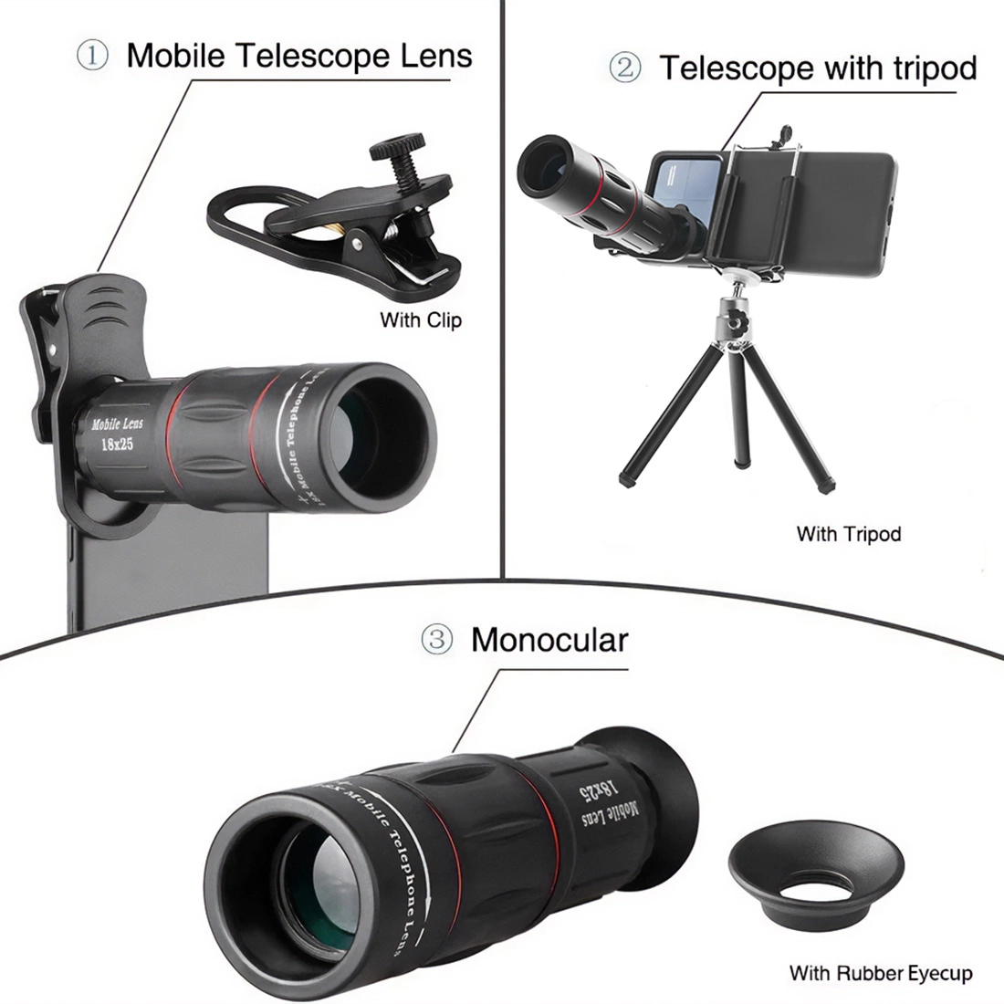 Objektív monokulárneho telefónneho ďalekohľadu so statívom 18x zoom Apexel APL-T18XZJ
