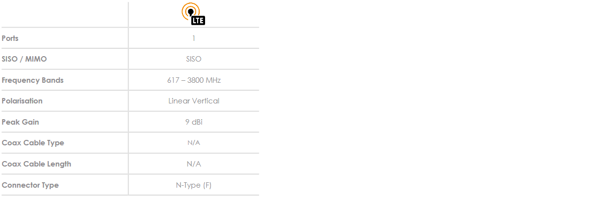 - Wzmocnienie @ 617 ?960 MHz: 6dBi