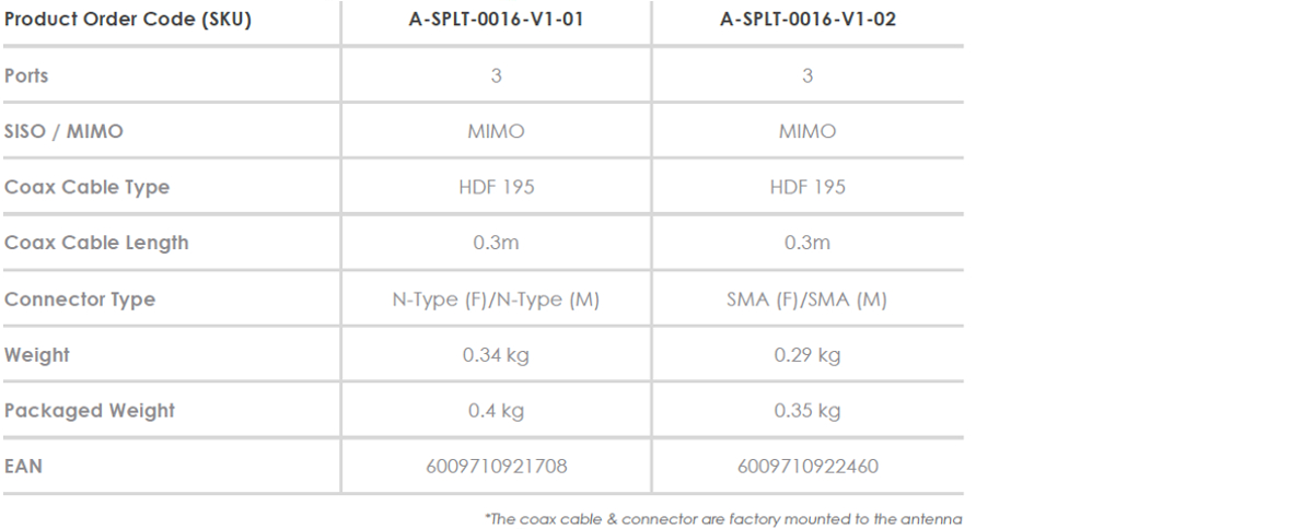 SPLT-16 to 2-drożny splitter, który działa w ultraszerokopasmowym paśmie od 410 do 7200 MHz. Operacje ultraszerokopasmowe pozwalają na wiele implementacji i mogą być używane we wszystkich popularnych aplikacjach 4G/LTE i 5G, a także w dwuzakresowej implementacji Wi-Fi. Produkt wykorzystuje konstrukcję dzielnika mocy Wilkinsona, ponieważ zapewnia niskie straty, zapewniając jednocześnie dobrą równowagę fazy i amplitudy. SPLT-16 może być używany jako rozgałęźnik do rozdzielenia mocy z jednej anteny na dwa niezależne urządzenia. SPLT-16 może być również używany jako sumator do łączenia dwóch oddzielnych anten w jedno urządzenie, co pozwoli na zróżnicowanie anten i lepszą wydajność. Obudowa SPLT wykonana jest z tworzywa ABS ze stabilizatorem UV, które jest tworzywem o wysokiej odporności na uderzenia, a także na kwasy i inne chemikalia.